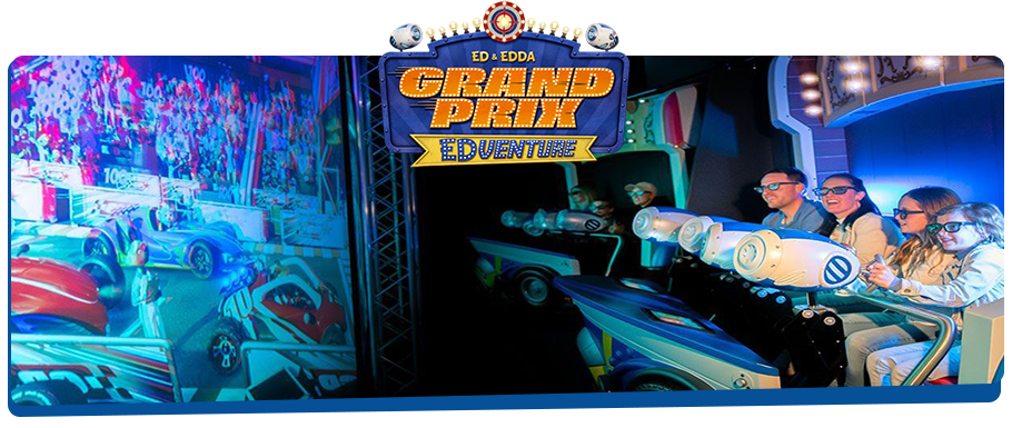 Mach dich bereit für ein rasantes Abenteuer! In der neuen Attraktion im Europa-Park erlebst du dein eigenes Rennen mit Ed & Edda. Im Europa-Park Historama wartet ihre allererste eigene Attraktion auf dich – und sie bringt dich mitten hinein in den neuen Film GRAND PRIX OF EUROPE! Schon der Eingang erinnert an eine echte Rennstrecke – bunt, spannend und voller Action!