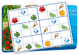 Das ist etwas für erfahrene Rätsel-Asse! Kannst du die Symbole an die richtigen Stellen setzen? Jedes Zeichen darf nur einmal pro Kästchen und Reihe vorkommen. Los geht’s!