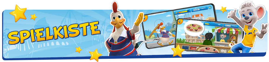 Mit der kostenlosen App „Spielkiste“ gibt es ausgewählte JUNIOR CLUB Spiele auch für unterwegs. Die App bietet eine kindgerechte Auswahl beliebter Spiele und bringt den Spielspaß auf Smartphone oder Tablet.